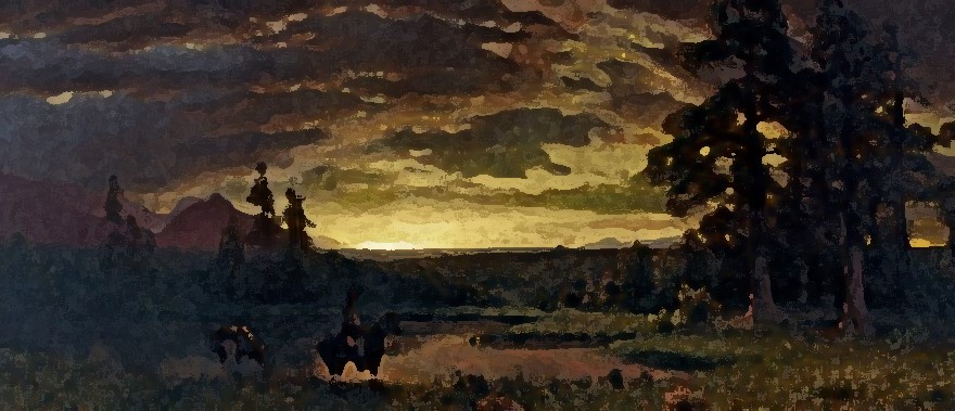 ふり仰いで星明かりの下で電線を数えると、かすかに4本の線を確認した。シュメン以東シベリアへの電線は皆4本線であるので、道に迷ったのではなかったのだと安堵して、馬に鞭をあてて進んで行く。やがて、前方に一村落が見えてきた。あの村に着いたらしばらく休憩しようと思い、そのまま馬に鞭をあてて進み、ようやく村らしき所に近づいてみると、何ということ、それは村ではなく、丘の下にある小さな森なのであった。森の木々が星明かりに反射して、茅葺き屋根のように見えたのであって、中佐は自らの勘違いを大笑いしたのであった。森を過ぎてもうすぐ丘に上ろうとしていた時、乗馬が嘶きを止めなくなった。ひと鞭あてて丘を上りきると、一台の駅馬車が停まっていた。その御者は車上から短銃を構えて、今まさに発射しようとしていたのである。中佐が近づくと、御者は中佐の軍服を見てようやく銃を収めたのであった。おそらく、乗馬はもの寂しい深夜に車輪の音や蹄の音を聞いて喜んで嘶き、御者は深夜の森の中で馬の嘶きを聞いて山賊の襲撃かもしれないと誤解して、銃を構えたのだろう。中佐は御者を一瞥し、微笑しながら通り過ぎたのであった。
